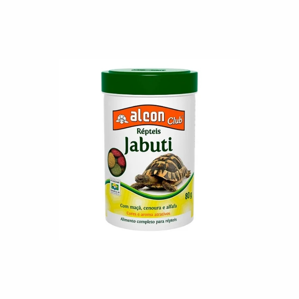 Alcon Jabuti 80g oferece nutrição completa e equilibrada para jabutis, garantindo vitalidade, saúde intestinal e bom desenvolvimento do casco.