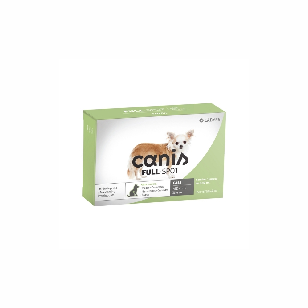 O Canis FullSpot 01 a 04 kg é uma solução tópica eficaz para auxiliar no controle de parasitas externos em cães de pequeno porte. Desenvolvido para aplicação direta na pele, age rapidamente e oferece proteção contínua, contribuindo para o bem-estar e a saúde do pet.