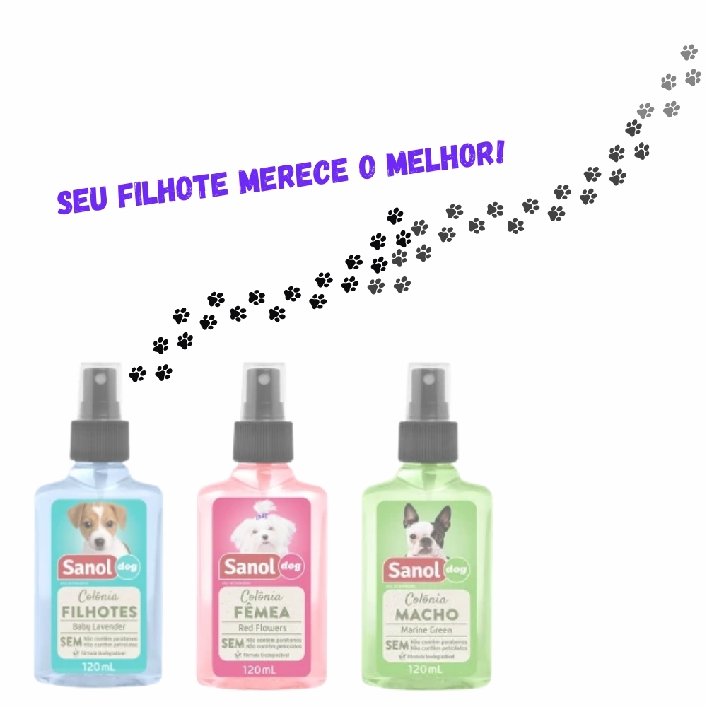 A Colônia Sanol Filhote 120ml garante perfume suave e proteção para cães jovens.