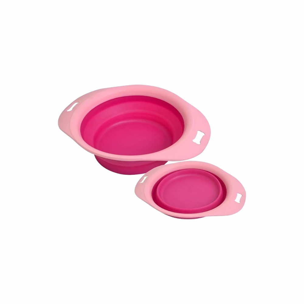 O Comedouro de Silicone Retrátil Rosa 500ml é perfeito para passeios, viagens e rotinas externas com seu pet. Fabricado em silicone resistente, é leve, dobrável e fácil de transportar, podendo ser guardado em bolsas ou mochilas sem ocupar espaço.