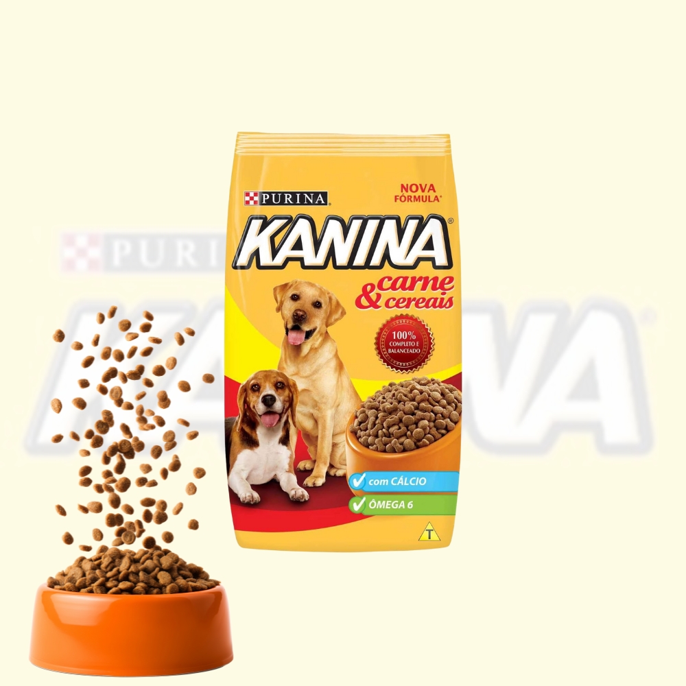 A Kanina Carne e Cereais 15KG é uma ração completa e equilibrada para cães adultos, elaborada com carne de alta qualidade e uma seleção de cereais que fornecem energia, fibras e nutrientes essenciais para a saúde geral do seu pet.