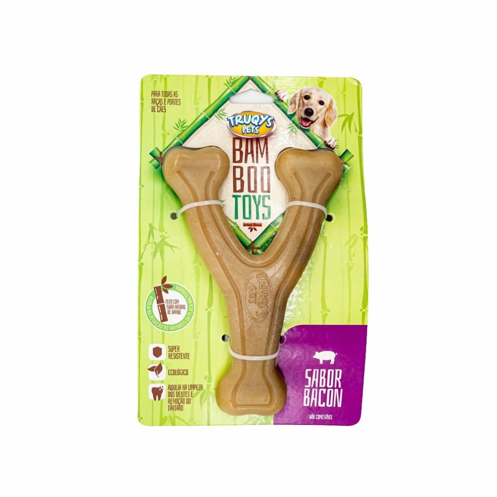 O Osso Bamboo Forquilha M oferece entretenimento e cuidado dental para cães de porte médio. Fabricado com material ultrarresistente, suporta mastigação intensa e ajuda a manter dentes limpos e saudáveis.