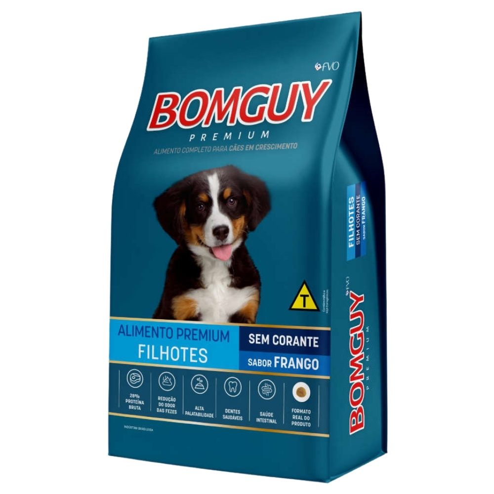 A Ração Bomguy Premium Sabor Frango possui uma fórmula que atende às necessidades nutricionais específicas dos cães filhotes, auxiliando no crescimento saudável e no fortalecimento do sistema imunológico.