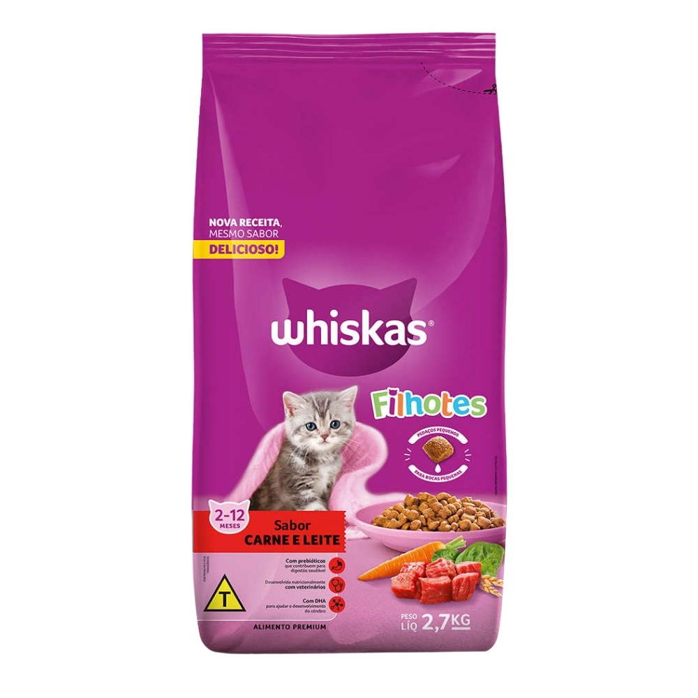 Ração Whiskas para Gatos Filhotes Sabor Carne e Leite 2,7kg