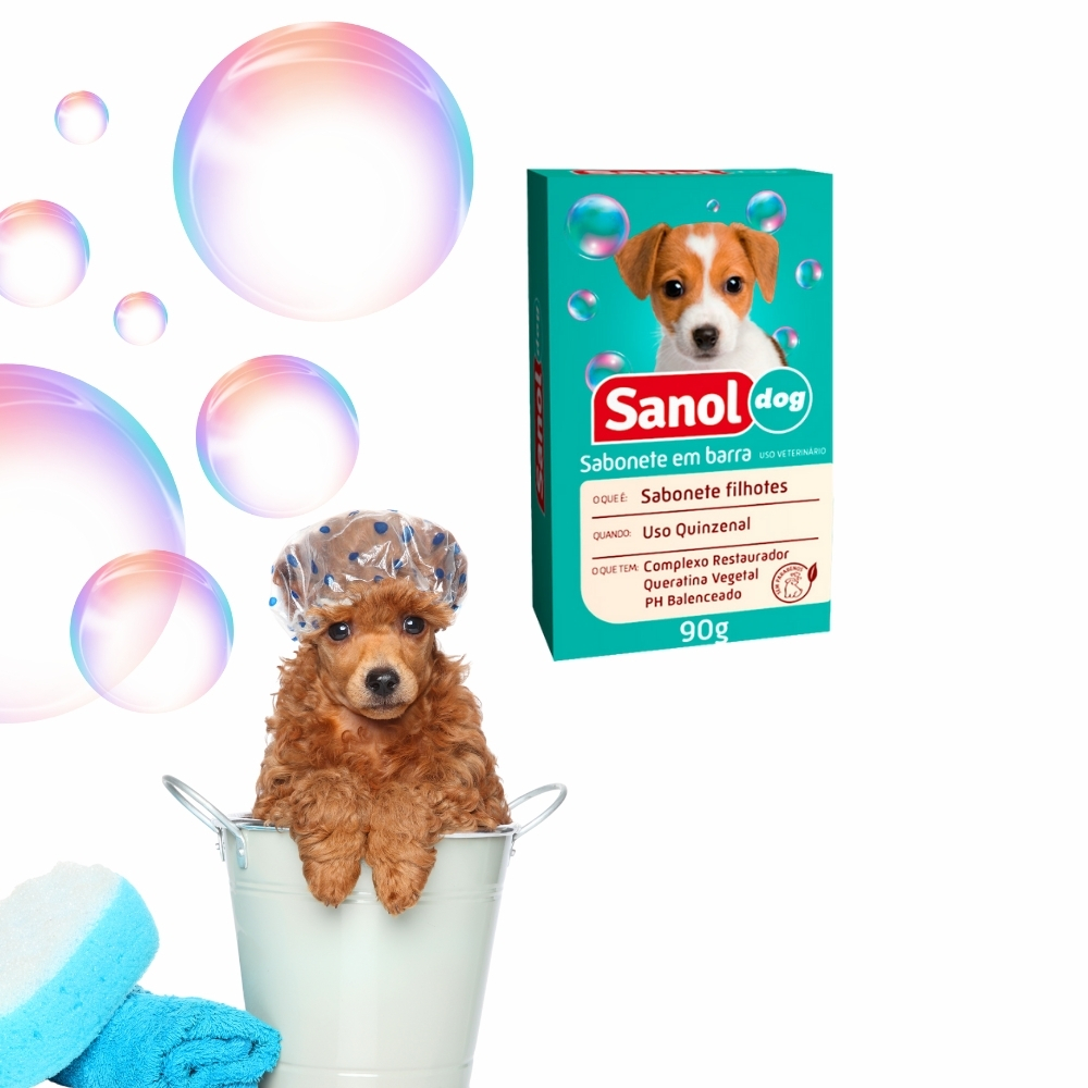 O Sabonete Sanol Dog Filhotes 90g foi formulado especialmente para a pele delicada dos cães filhotes, promovendo limpeza suave sem irritar. Sua composição permite banhos mais seguros e agradáveis durante os primeiros meses de vida.